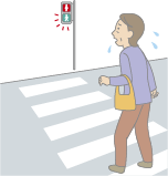 横断歩道を渡るときに、青信号で渡り切れるかを確認してみましょう。今までは青信号で渡り切れていた横断歩道で渡り切れなくなっている場合はサルコペニアの疑いがあります。